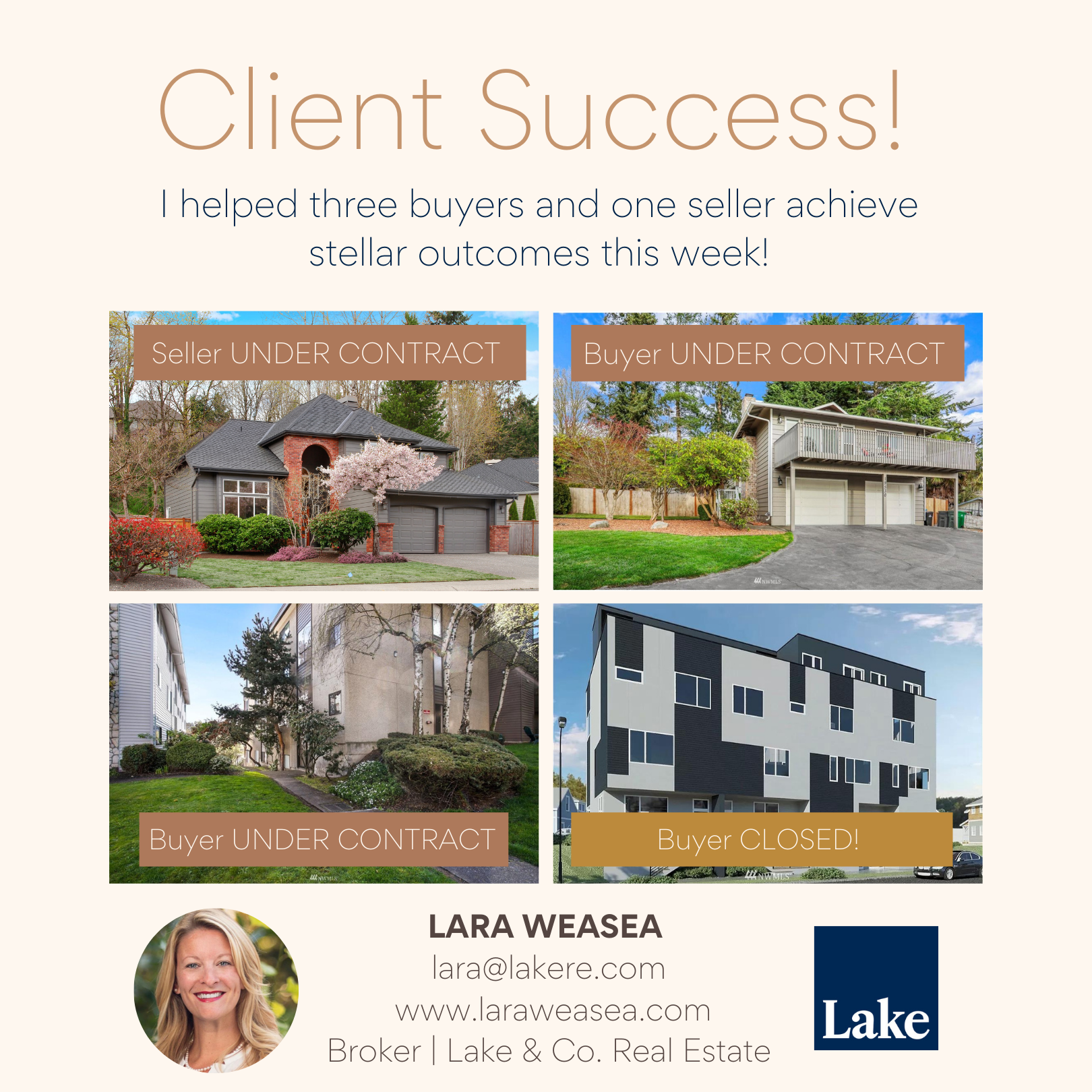 If you’d like YOUR success story to be next, let’s connect! lara@lakere.com | (206) 240-5193